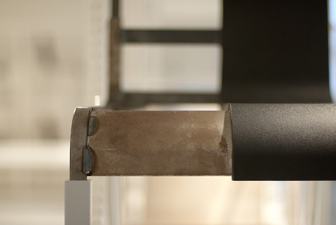 » Au cours de la collaboration de Maarten Van Severen avec Vitra, de nouveaux processus et matériaux ont été expérimentés, notamment le bloc de mousse de polyuréthane retenu pour la chaise .03. On a l'impression que la chaise .02 attendait l'arrivée de ce matériau : en comparaison, elle a l'air d'un modèle artisanal inachevé.