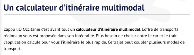 Or, le 25 mai 2023, « la Région Occitanie et liO [se sont dotées] d’un nouveau calculateur d’itinéraires web et d’une application mobile plus performants afin de mieux répondre aux besoins exprimés par les usagers » (source).